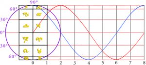 This is the seminal recognition that sines and cosines can be used to describe phenomenoa in the natural world, with the squashed together spacing of the lines at the edges of the rectangular shape at the centre of Peuerbach’s instrument, reflecting the peaks and troughs of sines and cosines, when the differences in successive values are less than in the middle of the cycle.